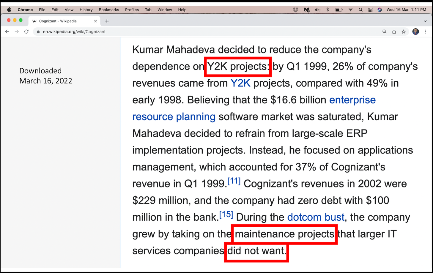 - 1996: Turned the JV into an independent company called Cognizant Technology Solutions, with Kumar Mahadeva as CEO