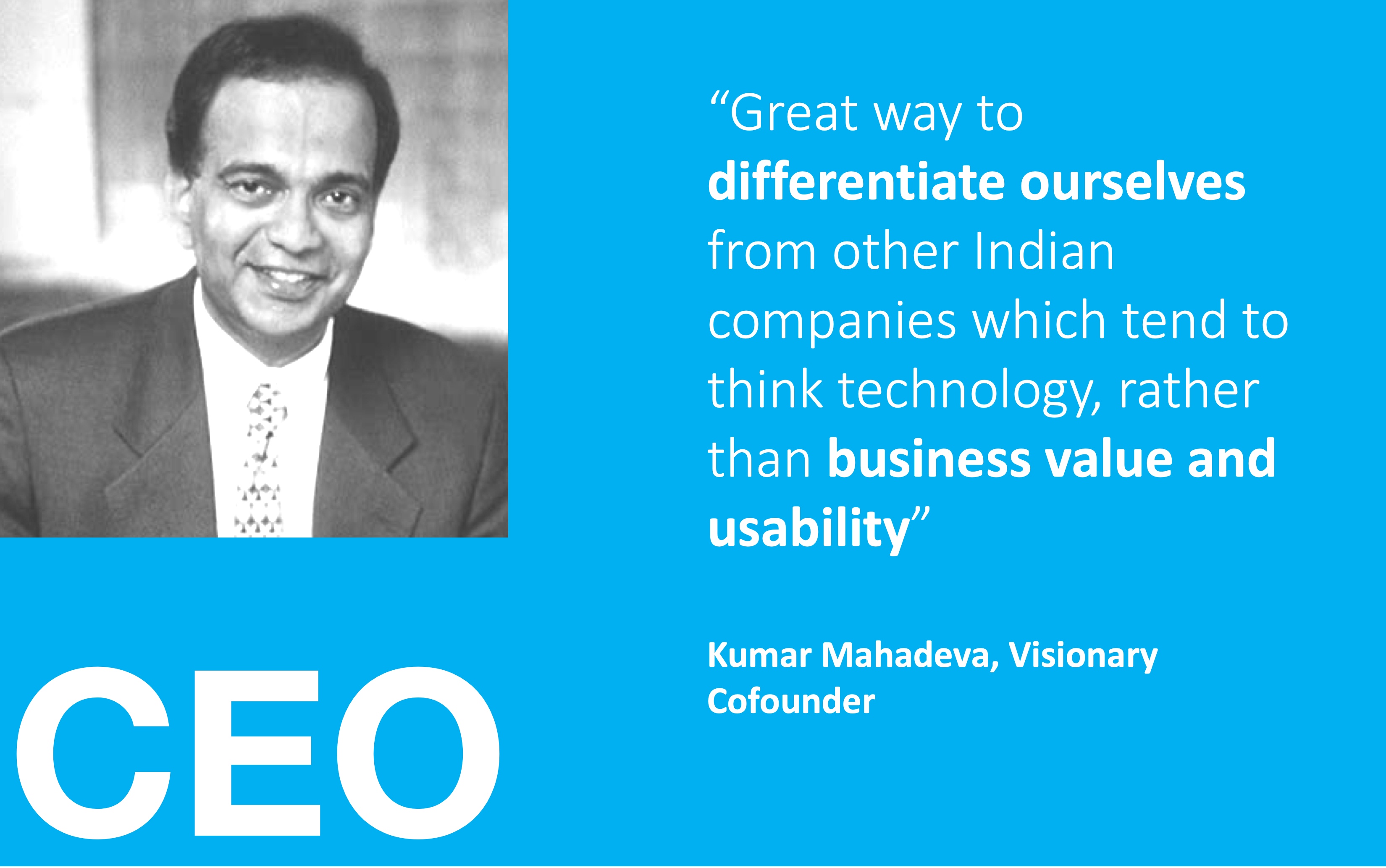 Note 3: Kumar Mahadeva was the visionary cofounder